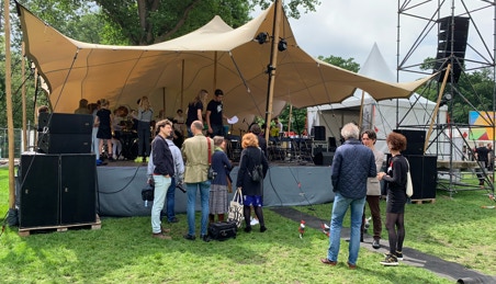 Je bent welkom als je een van de volgende instrumenten speelt: saxofoon, trompet, trombone, dwarsfluit, klarinet, slagwerk, toetsen en (bas) gitaar. Maar ook strijkers zijn welkom.